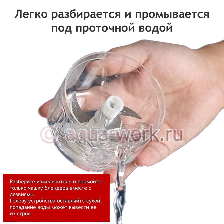 Легкая разборка и промывка чашки и лезвий под проточной водой.