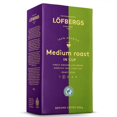 Кофе молотый Lofbergs Medium Roast in Cup, это кофе средней обжарки и мелкого помола, предназначенный для заваривания прямо в чашке.