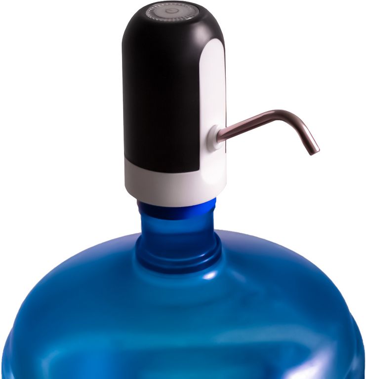 Для работы помпы нажмите на кнопку сверху - и Вы услышите негромкое жужжание, а из носика в подставленную емкость польется вода.