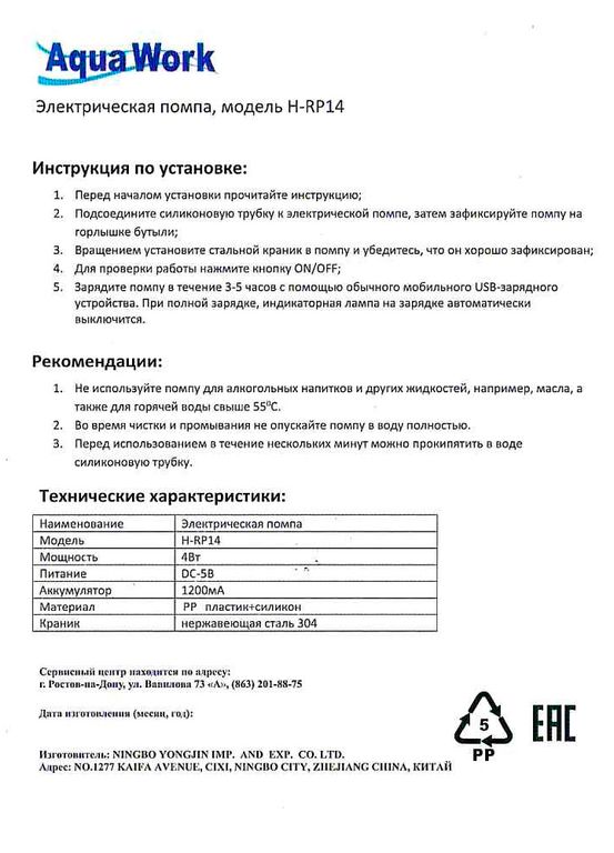 Электрическая помпа для воды Aqua Work модель H-RP14 - отличное решение для замены обычной ручной помпы.