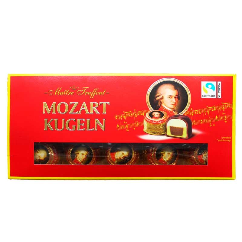 Конфеты Mozartkugeln Edelmarzipan Reichgraf — вкуснейшие шоколадные конфеты, сделанные в лучших традициях немецких кондитеров. Они имеют очень старинную и удивительную историю. Однажды, в 1890 г. Пауль Фюрст решил почтить память в честь столетия со дня смерти Вольфганга Амадея Моцарта и создал эти шоколадные конфеты c потрясающей начинкой. Об этом говорит не только название, но и яркая и запоминающаяся обертка конфеты c портретом этого композитора. Это не просто сладость для приятного чаепития, это особое угощение для особых гостей. Являются одним из любимейших лакомств для европейцев.