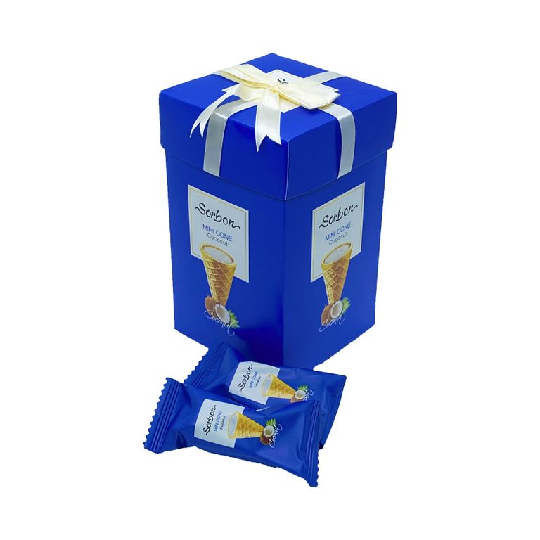Мини-рожки Sorbon конфеты (sorbon mini cone) - это хрустящий вафельный рожок и нежная, невероятно вкусная начинка "Кокос" в подарочной упаковке. Лакомство, сохранившее традиционный рецепт Иранских сладостей, придется по душе детям и взрослым. Коробка конфет станет отличным подарком на любой праздник или просто порадовать друзей и близких.