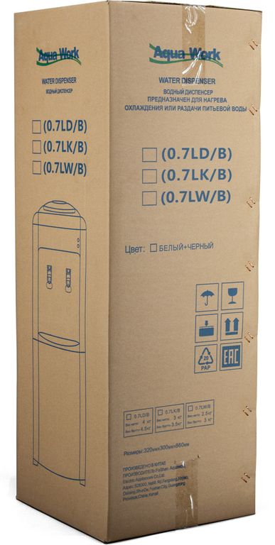 миниатюрную модель диспенсера-водораздатчика Aqua Work 0.8-LWR нельзя использовать для нагрева или охлаждения воды из установленной сверху бутыли.